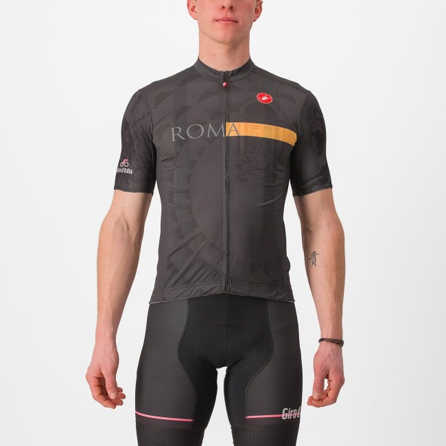 sehr eng anliegende Castelli Schnittführung gewährleistet verbesserte Aerodynamik besteht an der Front- und Rückseite aus dem sehr leichten, elastischen und atmungsaktiven Velo Light Material by Sitip Active Einsatz von 3D-Mesh Netzmaterial an Armen, Seitenbahnen und Rückentaschen für perfekten Sitz am Körper und optimale Atmungsaktivität Verwendung von recycelten Materialien zeigt das Umweltbewußtsein des Herstellers etwas länger geschnittene, eng anliegende Ärmel sorgen für aerodynamischen Sitz durchgehender, verdeckter Reißverschluss (YKK Vislon - Zipper) Highlight ist der goldene Zipper in Form der Siegertrophäe "trofeo senza fine", die dem Gesamtsieger der Rundfahrt am Ende verliehen wird aufgesetzte, 3-teilige Rückentasche seitlich angeschrägt für leichteren Zugriff elastischer Bundabschluss mit innenliegendem Silikonstreifen verlängerter Schnitt am Rücken